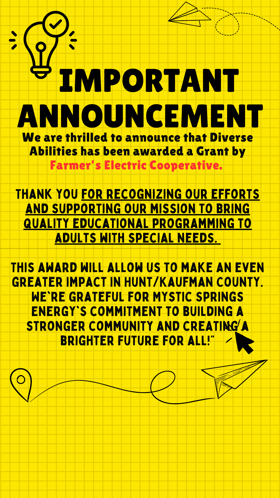 We believe that individuals are not defined or LIMITED by their disability! We celebrate DIVERSE ABILITIES and want to participate in the quality of life for adults with special needs.
